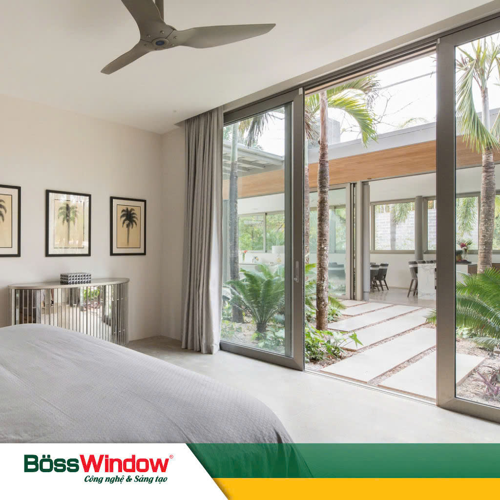 BossWindow sở hữu những đường nét thanh thoát, khung nhôm mảnh nhưng vô cùng chắc chắn, giúp tối ưu hóa diện tích mặt kính. Điều này giúp ngôi nhà tận dụng tối đa ánh sáng tự nhiên – yếu tố cực kỳ quan trọng trong phong thủy ngày Tết để xua tan khí lạnh mùa đông, mang lại sự ấm áp và tràn đầy sức sống.